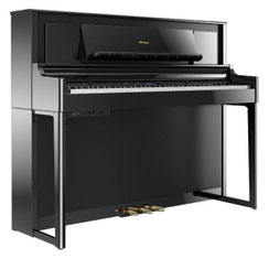 Al vertice della gamma Roland LX700, LX708 ricrea tutte le emozioni dell’esecuzione su un pianoforte a coda tradizionale in una grande sala da concerto. Spiccando nella linea LX per il suo mobile alto e imponente e per il coperchio superiore apribile per un’emissione sonora ottimale, questo lussuoso strumento crea un’atmosfera elegante nella vostra abitazione. E con il suo potente sistema con otto altoparlanti pronto a riempire di musica la vostra casa, LX708 è la scelta definitiva per i musicisti più esigenti. LX708 spicca nella gamma LX con il suo mobile più alto, i pannelli laterali in un pezzo unico e il coperchio apribile che modifica sottilmente il carattere timbrico, questo lussuoso modello di punta è stato concepito per attrarre il vostro sguardo, e le vostre dita. La tastiera Hybrid Grand del modello LX708 è dotata di una meccanica dei tasti più lunga della maggior parte dei pianoforti digitali. Per questa ragione, il perno di ogni tasto è posizionato più indietro, e di conseguenza non devi premere con più forza, anche se suoni il tasto in una posizione più vicina alla sua estremità superiore. I tasti bianchi combinano eleganti fianchetti in legno con un robusto telaio interno che non richiede manutenzione e offre la massima affidabilità. Una delle emozioni di suonare un pianoforte in una sala da concerto è il modo in cui il suono riempie lo spazio, e sarebbe frustrante se il tuo pianoforte suonasse piccolo e senza vitalità. L'ammiraglia LX708 è dotato del più impressionante Acoustic Projection System della gamma, con un sistema di diffusori a quattro vie, con otto altoparlanti pilotati da un potente amplificatore. Gli otto altoparlanti sono suddivisi in quattro coppie, ognuna ottimizzata per offrire una riproduzione sonora superiore dell’intera gamma dinamica dello strumento, sino al rumore dei martelletti che colpiscono le corde o la risonanza del mobile quando il suono riverbera all'interno del corpo del piano.